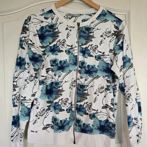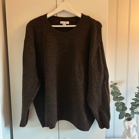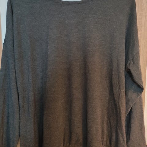 Fin genser fra Fransa med stilige knappedetaljer på venstre skulder. Pent brukt, ingen hull eller merker.