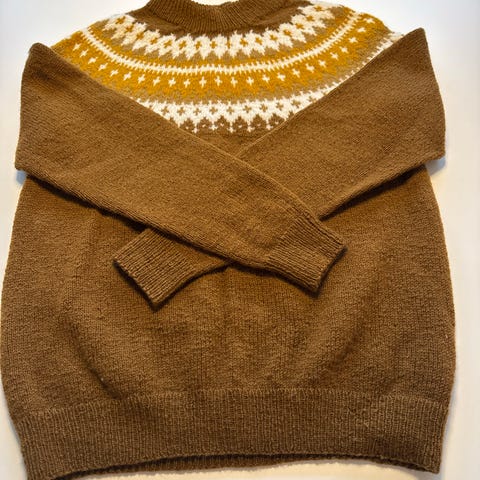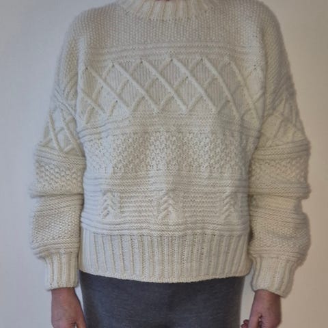 Hjemmestrikket Vardegenser i tynt ullgarn. Damemodell, str M.
