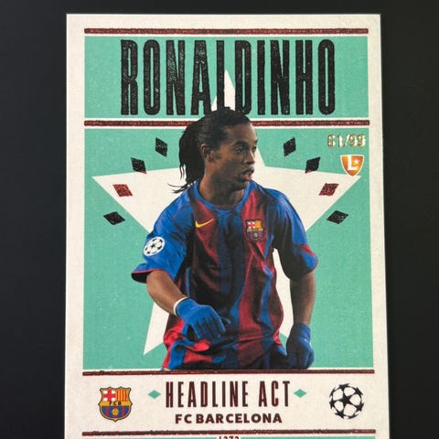 Ta gjerne en titt på mine andre fotballkort annonser for samlet frakt. Jeg har blant annet fotballkort av andre Barcelona spillere som Yamal, Messi, Ronaldinho osv.