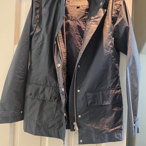 Ikke brukt mye, men dessverre er glidelåsen raknet av nederst på jakka. Er et par flekker jeg ikke har forsøkt å fjerne.