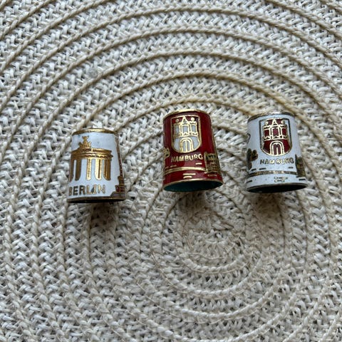 6 velbrukte fingerbøl i sølv eller sølvfarget metall. Sølvmerker på 2 av dem, men tror flere er i sølv.