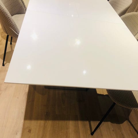 Jeg har 8 fine spisestoler til salgs. Pent brukt. Selges for 200kr pr stykk, eller 1000 kr for alle!