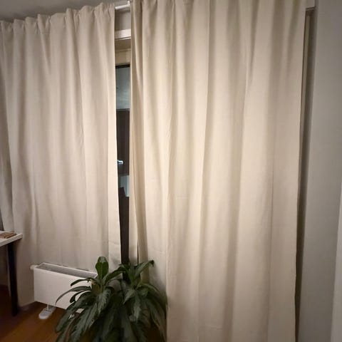 Ett sett (2stk) lange gardiner. Foret og sydd av syerske.
