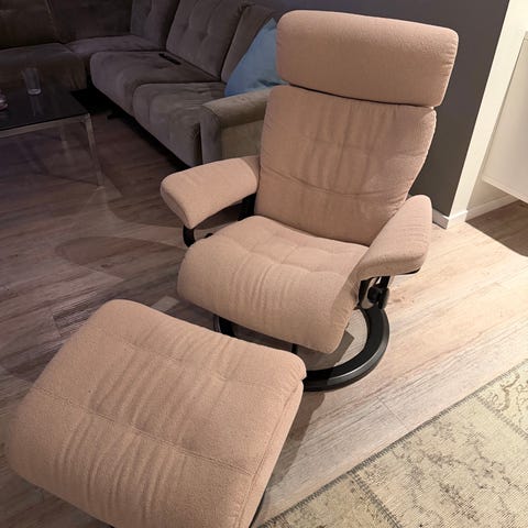 2 stk stressless Jazz til salgs. De er i veldig god stand bortsett fra bittelitt slitasje på ene stolen sitt ene armlen, se bilde.
