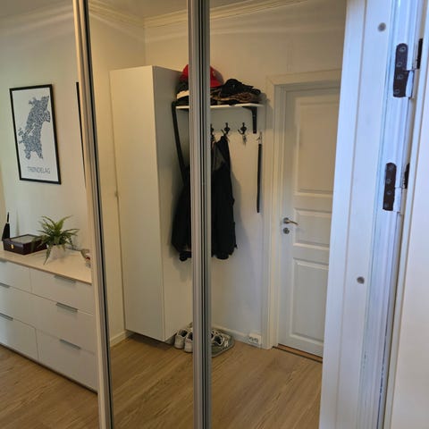 Skyvedørsgarderobe med speil og innredning. Må hentes raskt på Grillstad.