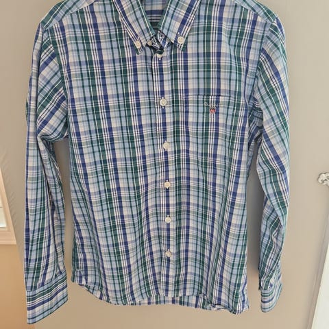 Mørk blå gant skjorte str 11-12 år. Kan brukes fra 10 års alder. Topp stand! Selges for 100kr+porto