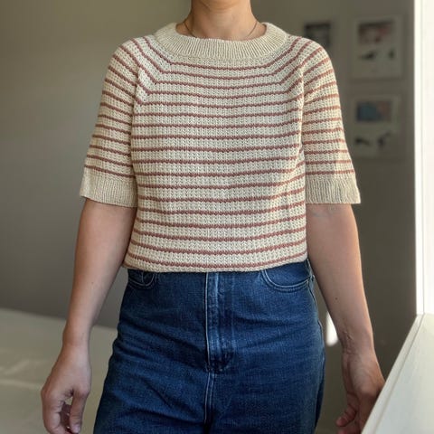 Hjemmestrikket genser i Kos fra Sandnes garn. Størrelse S/M.