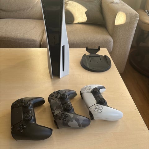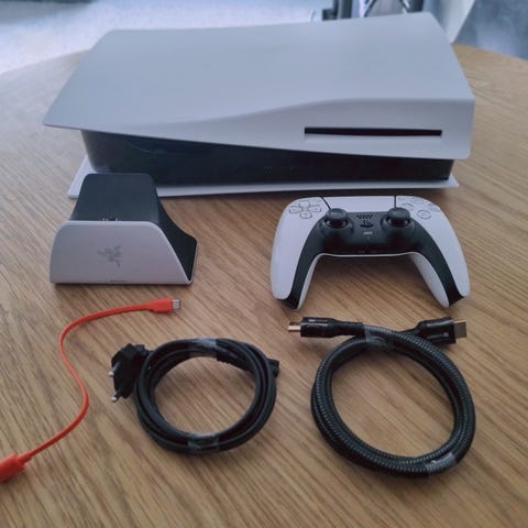 Playstation 5 spillkonsoll med tilhørende kontroller. Kommer med kvittering og original emballasje.