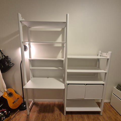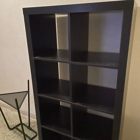 Veldig fin hylle. Tror det er en IKEA BILLY hylle. Fargen er mørk grå. Selges billig da den må hentes i 4.etasje