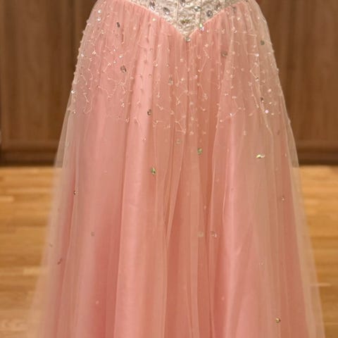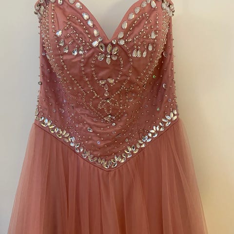 Nesten ny ballkjole brukt en gang. Er sydd inn bak så mulig å gjøre den litt større