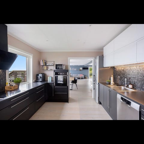 Tradisjonell eikekjøkken fra kvalitetsleverandøren Mobalpa selges grunnet planlagt oppgradering. Kjøkkeninnredning består av overskap og underskap, stein benkeplate og inkluderer kjøleskap med franske dører, integrert mikrobølgeovn, oppvaskmaskin, gass og induksjon koketopper, stekeovn og avtrekkshette.