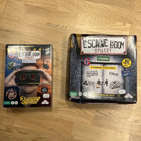 Escape Room Spillet er et brettspill som inkluderer fire ulike escape rooms: Prison Break, Virus, Nuclear Countdown og Aztec Temple. Spillet inneholder også en Chrono Dekoder som hjelper til med tidtaking og ledetråder. Passer for 1-6 spillere, anbefalt alder fra 16 år. Spillet har en spilltid på ca. 60 minutter og krever samarbeid og problemløsning.