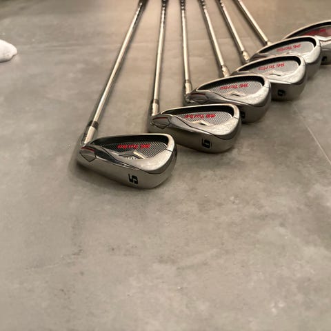 Links Wilson Staff D9 forged 5-G 105 g Dynamic gold i stiff flex med golf pride tour velvet grep i midsize, køllene er i god stand bortsett fra noen små hakk i sålen på 9 jernet(se bildet)