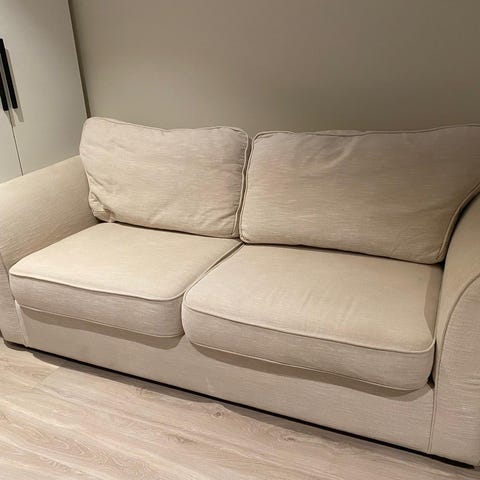 Mørk grå to-seter sofa gis bort mot henting. Du må bære ut i bil selv.
