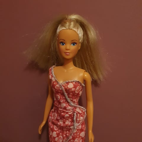 Barbie dukke med rosa rutete kjole