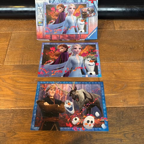 Ravensburger Frozen II Giant Gulvpuslespill med 24 brikker. Puslespillet har motiv av karakterene Anna, Elsa og Olaf fra Frozen II. Egnet for barn fra 3 år og oppover. Brikkene er store og enkle å håndtere, designet for å legges på gulvet.