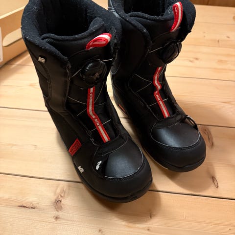 K2 Mini Turbo snowboardstøvler i svart og blå farge. Modellen har Boa-snøring for enkel justering. Laget med materialer som gir komfort og støtte under snowboardkjøring. Størrelse 34,5.