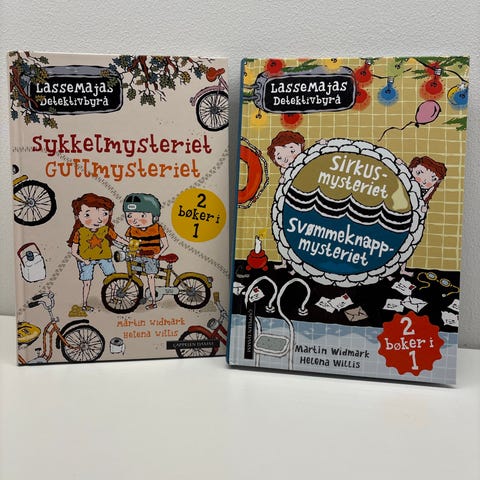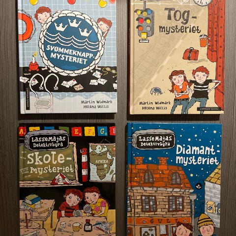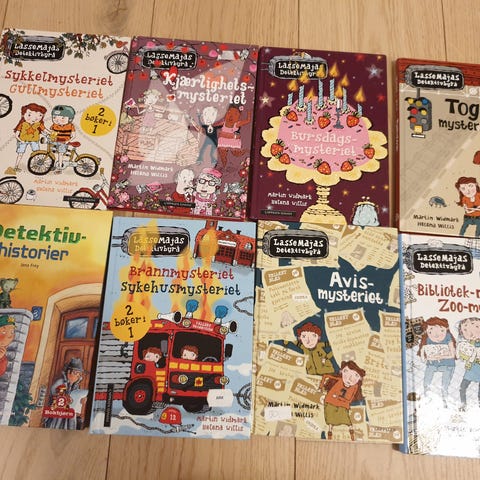 LasseMajas Detektivbyrå barnebøker med ulike titler som inkluderer mysterier som Skolemysteriet, Bibliotekmysteriet, Safranmysteriet, og flere. Bøkene er skrevet for barn og inneholder illustrasjoner. Serien er kjent for sine detektivhistorier med karakterene Lasse og Maja.