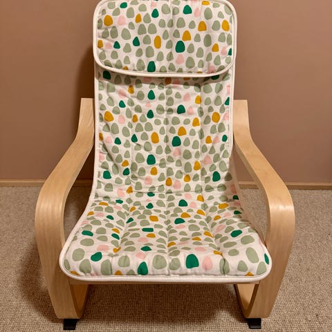 Pent brukt lenestol til barn selges. Den er 6 år gammel og har blitt brukt av ett barn. Den har noen flekker på trekket men jeg har ikke forsøkt veldig hardt å vaske det bort. En god og solid barnestol!