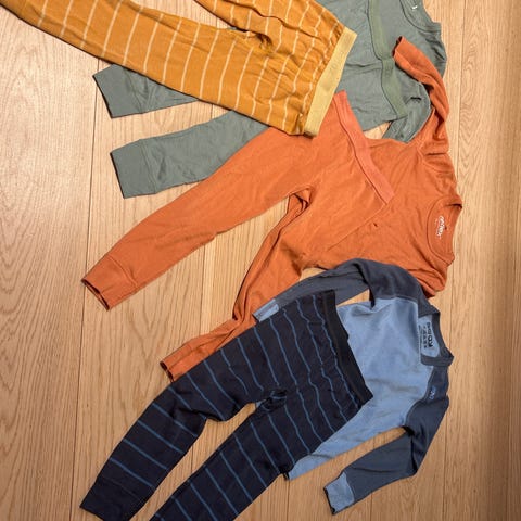 Fire overdeler og én pyjamas. Overdeler fra Janus, Joha og Hust and Claire. Pyjamasen er fra Polarn og veldig lite brukt.