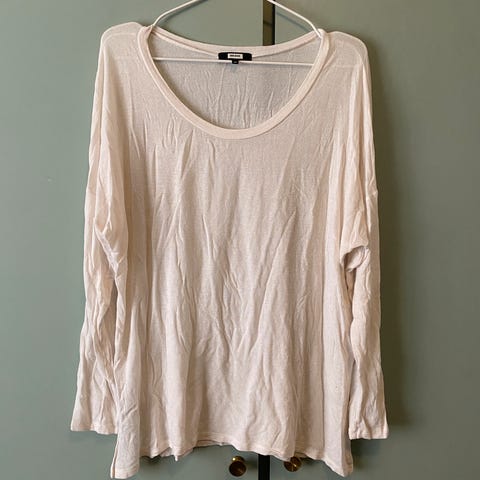 Bik Bok genser i størrelse M, hvit med svarte striper, laget av viskose. Genseren har en krage med V-utringning og lange ermer. Egnet for kvinner.