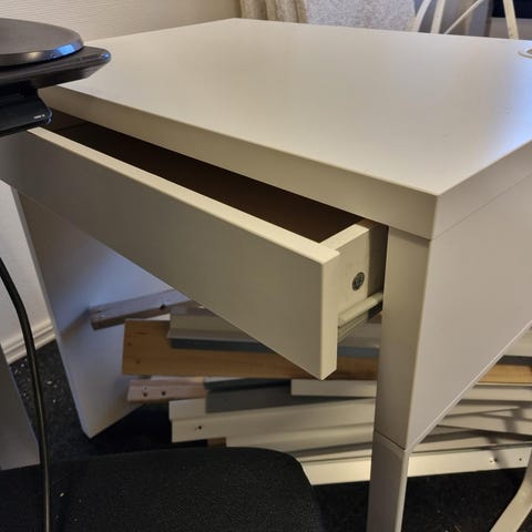 Hylleseksjon til Micke skrivebord fra IKEA. Praktisk med hyller og magnet tavle.