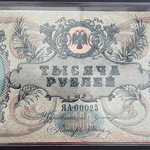 Samling av historiske sedler fra Russiske Tsarrike og andre land, inkludert detaljer om pålydende verdi, utstedelsesår, og geografisk opprinnelse. Sedlene er dokumentert med informasjon om materialer, trykkteknikker og historisk kontekst.