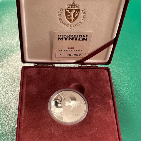 Utgitt av Norges Bank i forbindelse med 50-årsjubileet for frigjøringen.