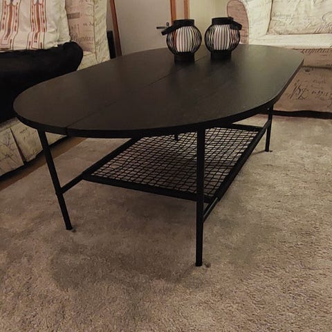 Sett med 2 bord fra Jysk. Det stor bordet har noen fått noen små hull i lakken som jeg har prøvd å legge med bilde av