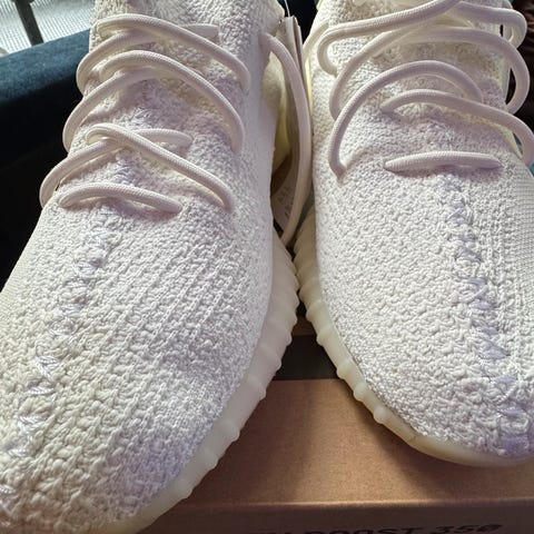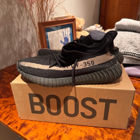 Selger et par Adidas Yeezy Boost 350 V2 i den klassiske fargen Core Black/Red.