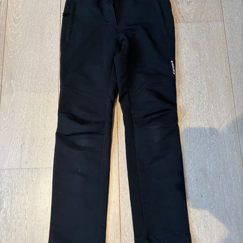 Varme og gode vinterbukser av merke Icepeak, farge svart. Veldig myke med avtakbar sele. Vanntette. Noe slitasje nede ved foten, se bilde. Ellers hele.