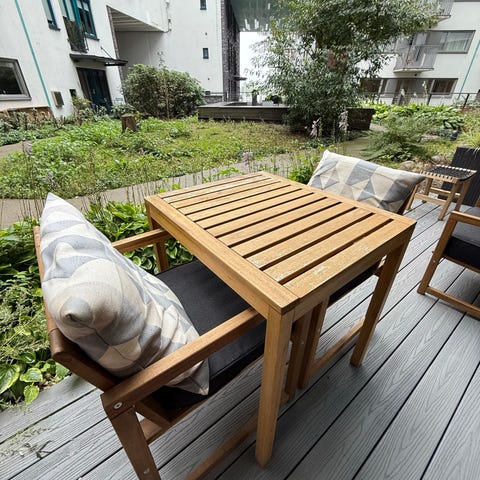 Møblene er forbehandlet for å være bedre beskyttet mot sol, regn, flekker og annen slitasje.