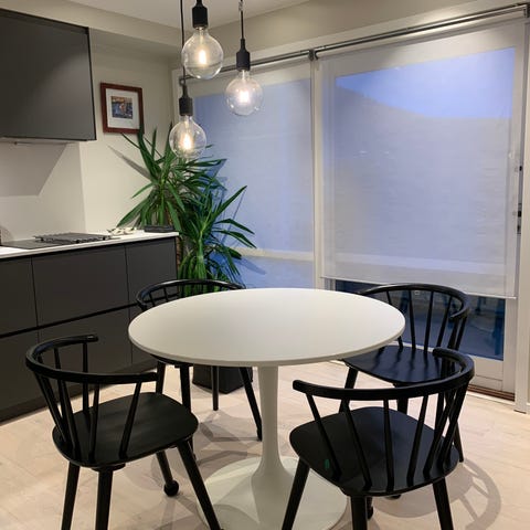 Usikker på hva bordet orginalt kostet, men stolene selges hos Jysk for 360kr per stk.