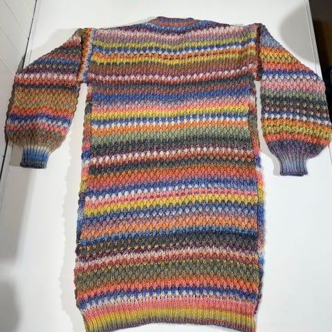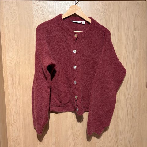 Nydelig blå-farget cardigan i ull. God og varm, kun brukt 2 ganger da den dessverre ble for lang.