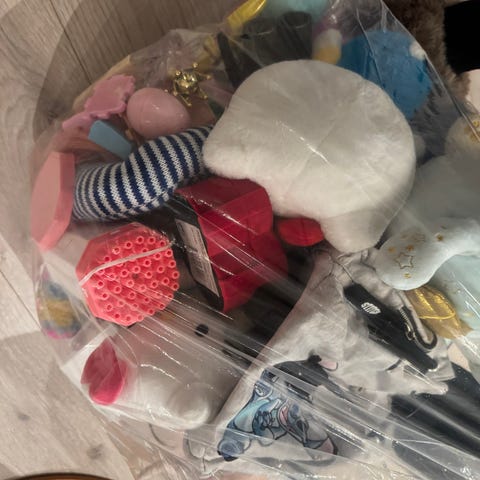 Gjerde, bøtte, hest og dukke. Dukken har dessverre mistet genseren sin