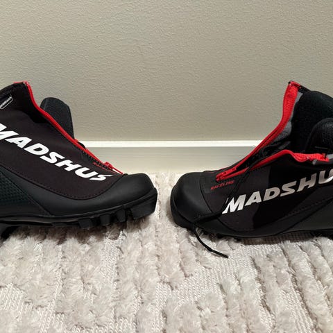 Madshus Superracerskisko i størrelse 26. Skisko med snøring, designet for langrenn. Aldri brukt.