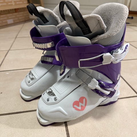 Elan ski med bindinger, lengde 110 cm, hvit og rosa farge.