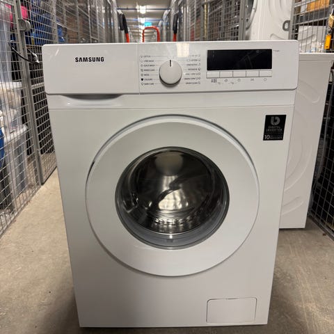 Pent brukt Samsung vaskemaskin fra oktober 2023 fortsatt garanti kvittering medfølger