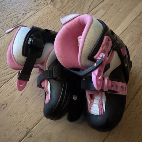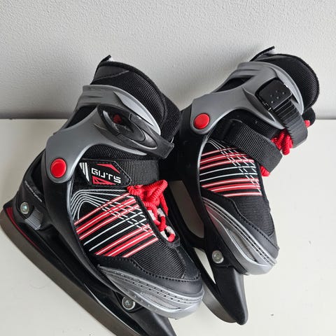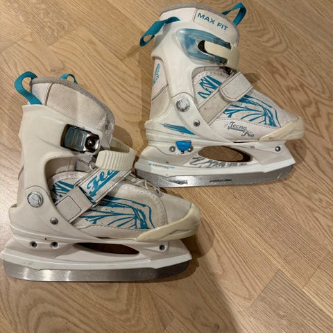 Selger et par praktiske justerbare skøyter til barn som kan reguleres fra størrelse 28 til 31. Perfekt løsning som gjør at skøytene kan brukes over flere sesonger mens barnet vokser.
