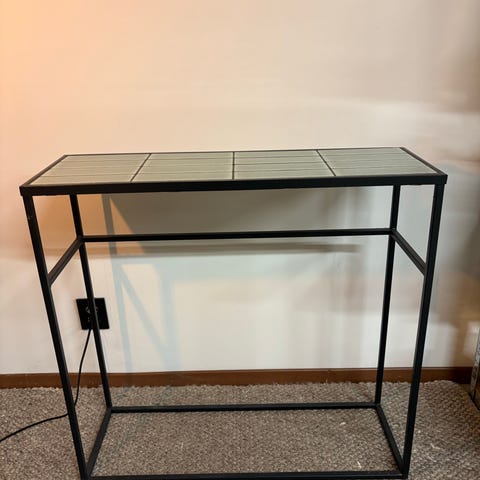 Bygget i lakkert metall. Passer fint i gangen i små leiligheter. Ukjent opphav, men vi tror denne er fra Bohus. Noen knapt synlige bruksmerker i toppen. Selges derfor billig.