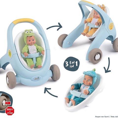Nesten ubrukt Smoby gåvogn, dukkevogn og aktivitetebord. 3-i-1. Har ulike aktiviteter som bidrar til kognetiv utvikling (putteboks, trykke, vri osv). Må hentes.