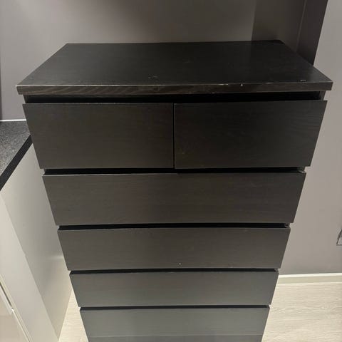 Pent brukt Ikea-kommode i svart, med høyglans-fronter.
