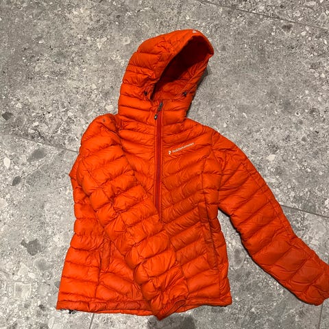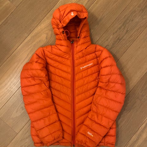 Pent brukt Peak Performance dunjakke, modell W Frost Down J selges kr 1500. Jakken har glidelåslomme i hver side, kan strammes inn nede og rundt ermer Har også en liten glidelåslomme på venstre erme som er ypperlig å ha skikort i for de som liker det. Hette som ikke kan tas av, men kan strammes. Jakken er svart. Kan sendes mot at kjøper betaler porto.