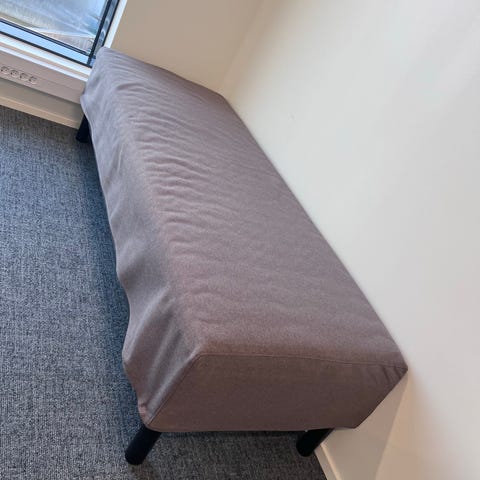 Sengeramme med trekk og ben. Alt er nytt og ubrukt