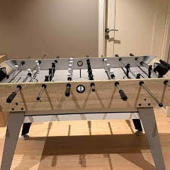 Klassisk og pent fotballspill vurderes solgt. Sterk konstruksjon og gode spillegenskaper, regulerbare ben, og manuelt score display. Farger som også damene i huset kan godta :-)