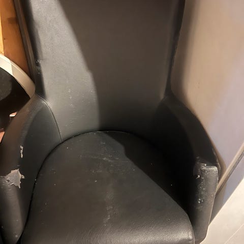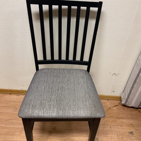 Stolene som er er godt brukte gis vekk ved henting, de bør få litt omtenksomhet hva angår oppussing. En stol mangler pute på setet, Stolene har to forskjellige trekk på putene