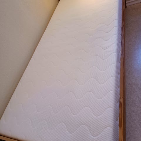Overmadrass av merket Tessdal fås med på kjøpet hvis ønskelig.