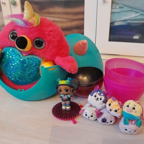Seler en panda bamse og en lang håret kosebamse.