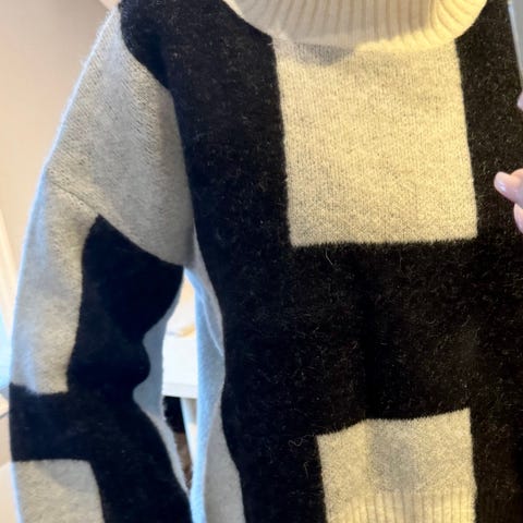 Være 42) Skjorten er hvit og har en teksturert overflate med knapper foran og på mansjettene. Stretch. Pene mansjetter gjør det lille ekstra. Ny, men tok av lappen i et optimistisk øyeblikk. Nå har optimismen Dans design. forlatt meg, og blusen må få et hjem der den passer. Se mer tekst ved bildene. Kjøpt hos kunskolonien. Nypris 999,-