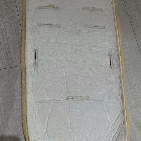 Deilig underlag til å ha i vogna i ekte lammeskinn i fargen beige. Veldig lite brukt.